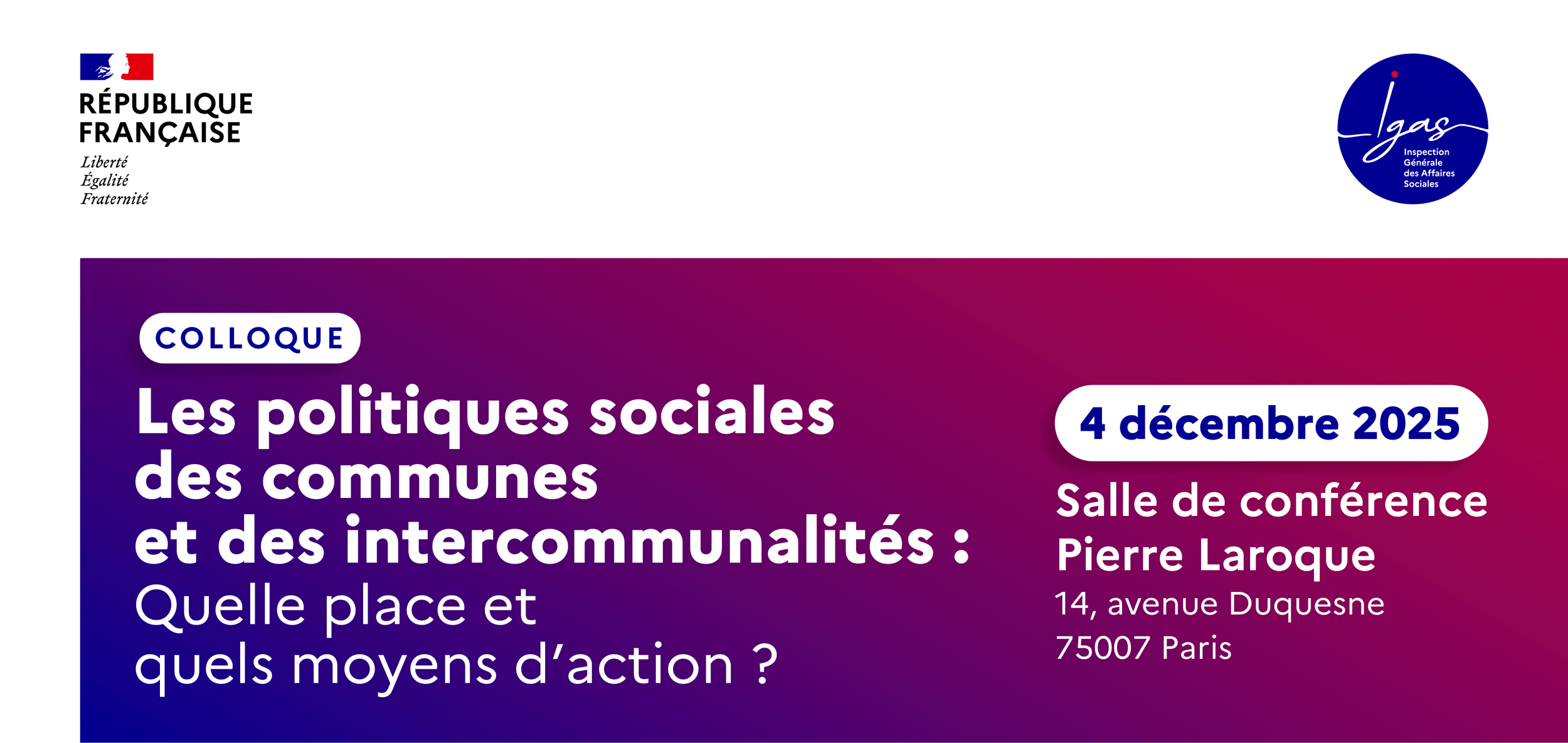 En soumettant ce formulaire, j'accepte que les informations saisies soient exploitées dans le cadre de l'organisation du colloque de l'Igas "Les politiques sociales des communes et des intercommunalités" qui se déroulera le 4 décembre 2025.